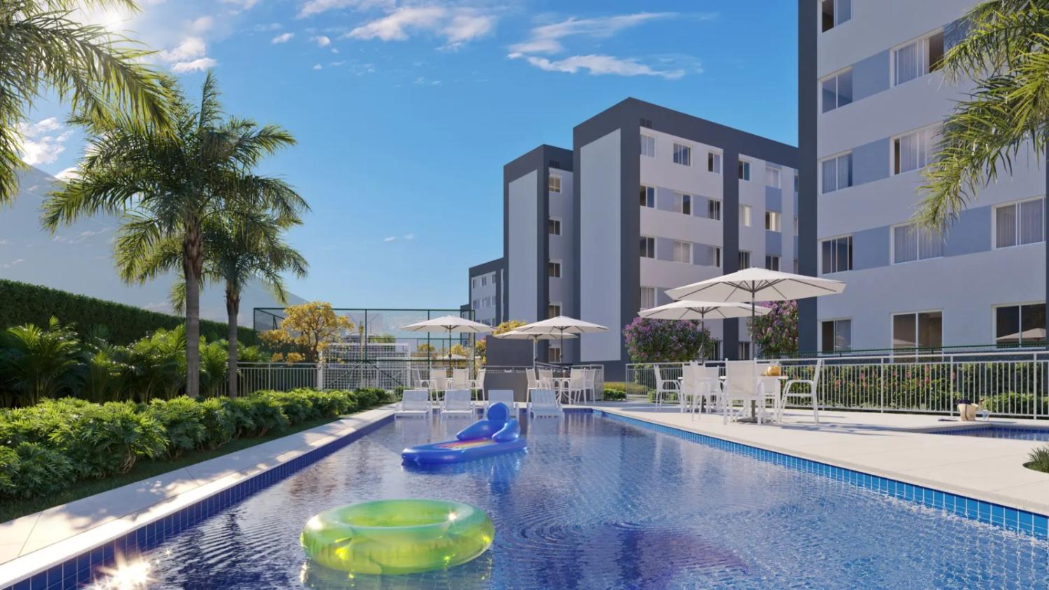 Tipologia: Apartamentos de 1 e 2 quartos, em um condomínio fechado, com lazer de clube
