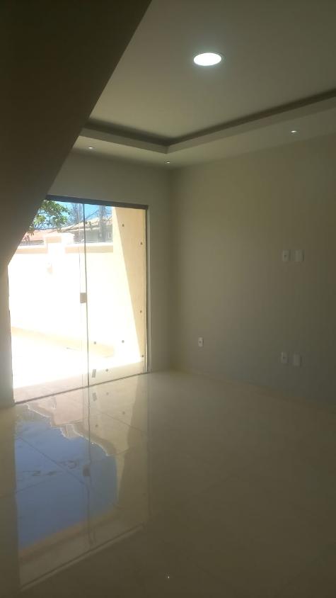 Linda casa em cordeirinho marica com dois quartos com suíte três banheiros uma vaga de garagem cozinha americana uma quadra da praia uma quadra da lagoa com comercio posto de saude onibus ao lado menos de 20m de distancia gramado na frente da casa piso porcelanato