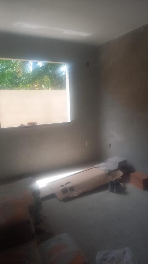 Linda casa final de obra com dois quartos, uma suite, dois quartos sala, cozinha americana, garagem piso porcelanato paredes emaçadas rua asfaltada proximo comercio, hospital, condução